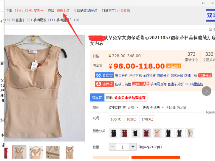 这是同一款产品两家店铺的不同上架方式,第一款的上架类目是保暖上装,第二款上架类目是 吊带/背心/T恤。像不同的类目有不同的搜索习惯,像内衣类目也是具有季节属性的商品。时值冬季,不论南北方温度都是会降低的。那保暖类的产品,在当季是热搜属性可面向全国,而T恤类的受众却少之又少。同样的产品,你因类目问题让你的目标客户搜索不到你,你只能卖天气偏暖的南方而丧失了大片寒冷地区的客户。